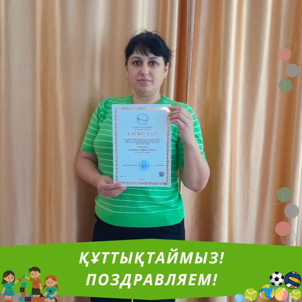 Тронина Надежда Николаевна Павлодар қаласының білім беру бөлімінің Алғыс хатымен марапатталды! 🎉