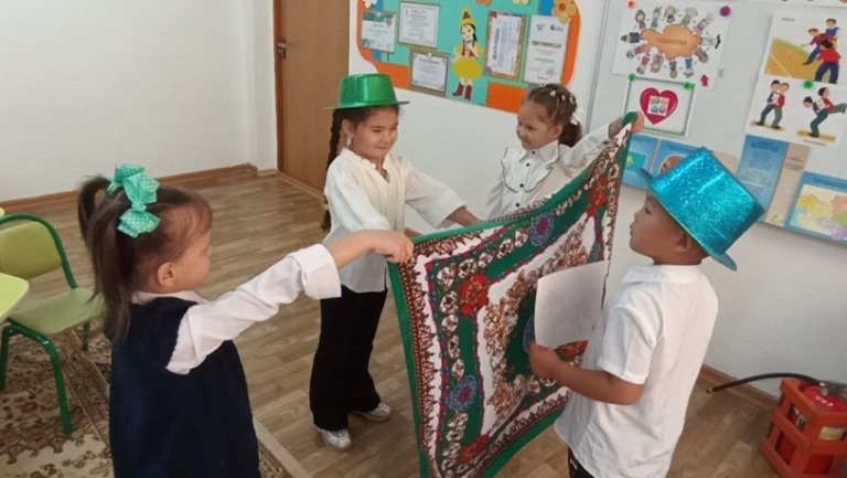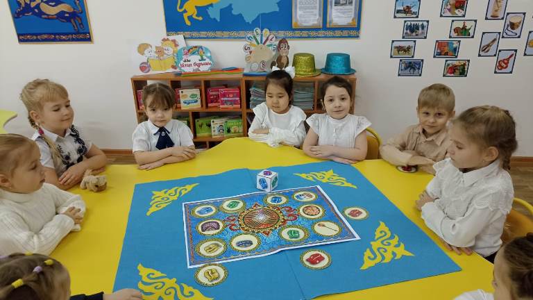 Мұнда балалар «Киіз үй», «Көк ту» пазлдарын құрастырып,«Қазақстан» додекаэдрындағы сұрақтарға жауап беріп, ұлттық нақыштағы үстел үсті ойындарын ойнады. Балалар іс әрекет соңында асық ойынын ойнап, «Қолшам» әдісі негізінде тақырыпты қорытындылады.