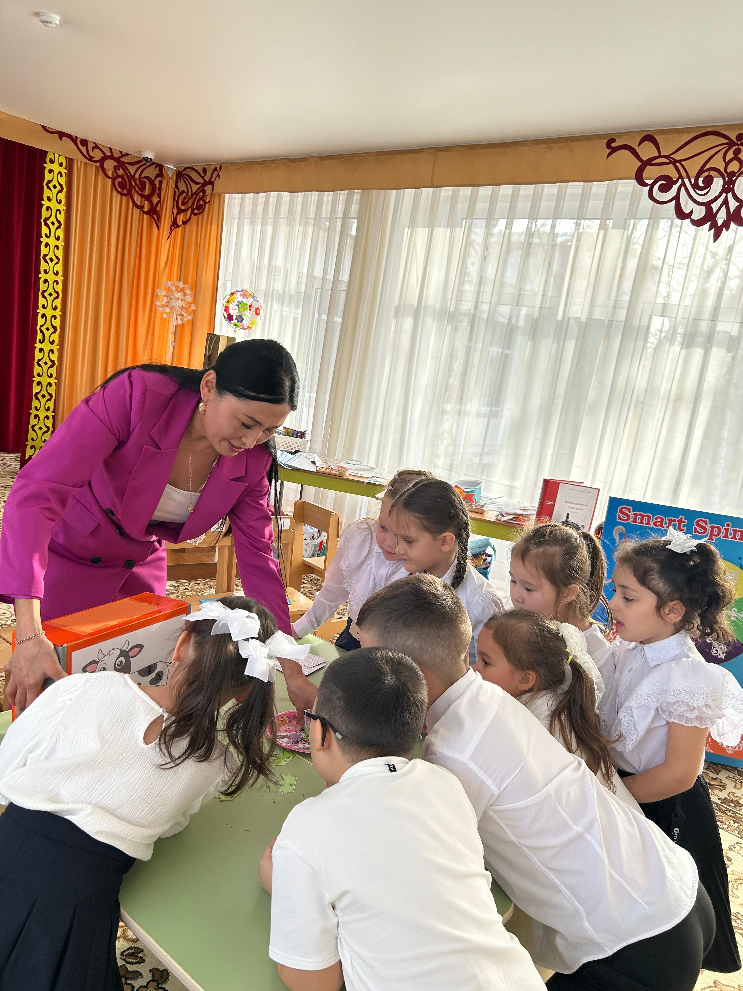 Біздің балабақша тәрбиешісі Картабаева Асия Амангельдиновна Павлодар қаласы №86 сәбилер бақшасында өткен қалалық семинарға қатысып, «Smart Spin-Box интерактивті ойын құралдары мектепке дейінгі балалардың дербестігі мен мотивациясын дамыту құралы» тақырыбында шеберлік сағатын өткізді.